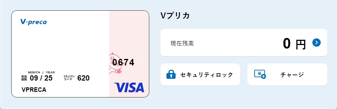 チャージ完了するとVプリカの残高に金額が表示されます。