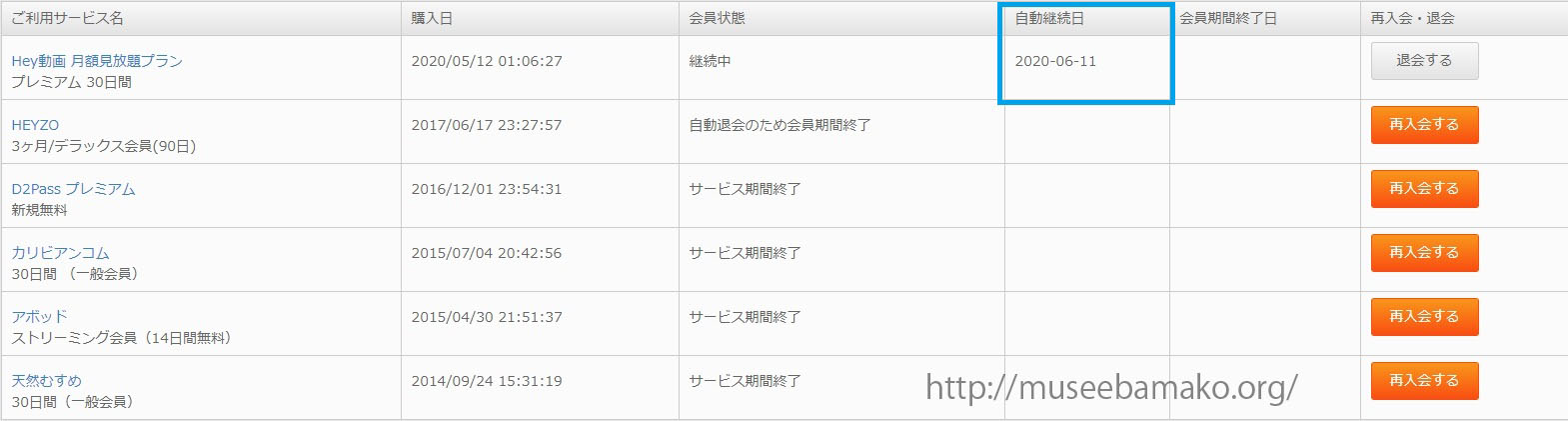 Hey動画見放題プランは自動更新システムです。更新日の前日までに退会手続きをしないと、翌期間も自動的に継続されます。なお、会員期間が残っている場合でも、一度退会手続きが完了するとサンプル動画以外は視聴できなくなりますのでご注意ください。